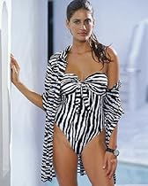 Tie-front zebra-print bandeau suit with soft cups, high-cut leg. Removable halter strap. Allover power-mesh for smoothing support. Nylon/Lycra. Hand wash. Imported.
